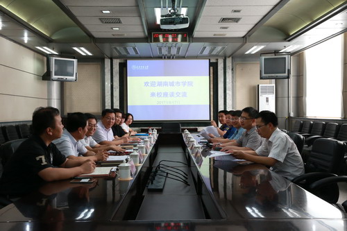 罗成翼就湖南城市学院的基本情况、学科建设、人才培养、服务地方、校办产业方面进行了交流。