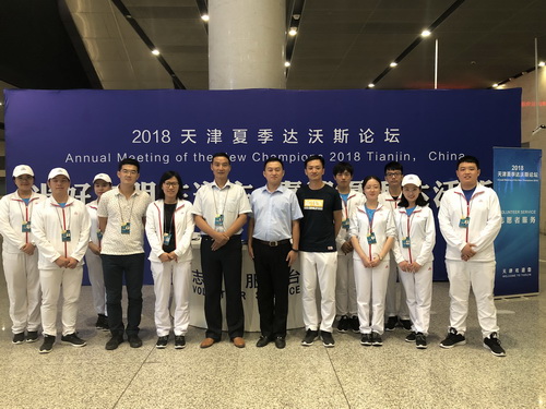 9月18日,2018天津夏季达沃斯论坛在梅江国际会展中心开幕,为做好会议服务,永利官网近30名学生志愿者提前到岗,开展为期一周的志愿服务工作。