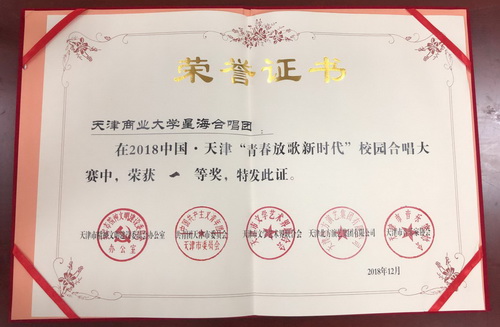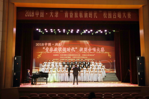 12月9日, 2018中国·天津“青春放歌新时代”校园合唱大赛在天津大礼堂隆重举行。活动旨在歌颂改革开放40年取得的伟大成就,鼓舞激励青年不懈奋斗、努力前进,热切表达青年对改革开放、伟大祖国、美丽家乡的礼赞及对全面建成小康社会和伟大中国梦的向往与追求。永利官网星海艺术团合唱分团代表永利官网参加此次比赛,并荣获一等奖。