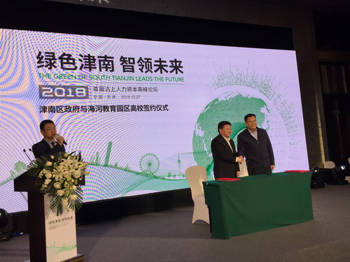 12月27日,“绿色津南智领未来”首届沽上人力资本高峰论坛在津南区举行。论坛期间,副校长齐恩平代表学校与津南区人民政府签订合作框架协议,发展战略研究室、教务处、社会科学处相关负责人参加。