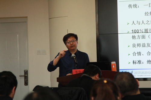 15日上午,李俊峰教授首先为永利官网青年教师做了题为《为师之乐在于共同成长——浅谈“成长动力”、“教学成长”和“学术成长”三方面》的报告,他从国家对高等教育的要求、教学的理想状态、大学教师工作职责、教学的三个层次、学生类型与学习动机等方面引入,分享自己在教学实践中不断探索思考的成果以及对“金课”构成要素的理解。他指出,教师要为学生守护成长的环境,提供成长支持,同时引导成长方向,努力使学生在学习过程中有成就感,引导其达到优秀。强调教学与科研是相互支持、共同成长的两个要素,缺一不可。鼓励青年教师要不断学习,努力做一位学识渊博、深入浅出、见解独到的好老师。