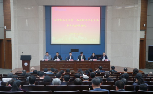 大会号召,全体代表和广大教职工在校党委的领导下,以习近平新时代中国特色社会主义思想为指引,深入学习贯彻党的十九大精神,全面落实全国教育大会精神,大力弘扬践行“团结拼搏、勇于奉献、百折不挠、敢于担当”的天商精神,坚定不移朝着建设高水平商业大学的目标努力拼搏、奋勇前进。