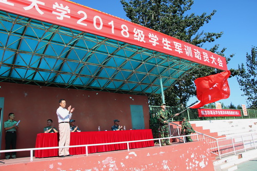 校人民武装部负责人作动员讲话。他指出,大学生军事训练是落实国家人才培养战略和加强国防后备力量建设的重要举措,也是学校教育教学的一项重要任务。他希望全体2018级参训学生秉承“笃学、弘毅、明德、济世”的校训精神,发扬团结拼搏、勇于奉献、百折不挠、敢于担当的天商精神,做到尊重教官,服从指挥;坚持不懈,团结一致;张弛有度,确保安全,以饱满的热情和昂扬的斗志投入到军训中。