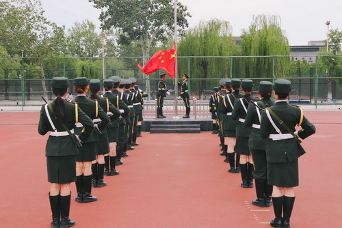 国旗护卫队着装整齐,迈着矫健的步伐护送着鲜艳的五星红旗入场。伴着《义勇军进行曲》的响起,五星红旗冉冉升起,全体唱国歌、行注目礼。来自经济学院和公共管理学院团员代表随后在国旗下发表了以《心怀祖国 逐梦前方》为主题的演讲,引起广大团员青年的共鸣。永利官网退休教师来自法学院邢素军教授朗诵了《读中国》,表达了对祖国的热爱之情。活动中,各学院团委书记为优秀团员代表佩戴团徽。校学生会副主席带领700余名团员青年重温了入团誓词。在全体团员青年齐唱团歌中活动圆满结束。