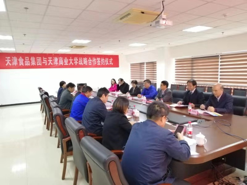 为深化人才培养模式改革,加强校企合作,进一步提高人才培养质量,提升服务社会经济发展能力,11月29日下午,由副校长齐恩平带队,教务处、生物技术与食品科学学院、管理学院等部门的相关负责人及教师一行7人到天津食品集团就双方全面合作进行座谈。天津食品集团党委副书记齐晓巍,以及集团总工程师办公室、组织部、运营部、天津市食品研究所有限公司、天津二商迎宾肉类食品有限公司等部门的相关负责人出席。