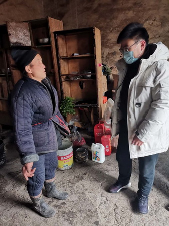 在做好疫情防控的同时,杨家利也随村干部一起走访探望村里建档立卡贫困户,为保证他们在疫情防控期间的生活保障,为其送去生活物资、口罩、消毒液等,并普及疫情防控知识,叮嘱他们如果有生活上的困难及时与他联系,帮助其解决。