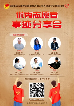 6月9日下午,校团委通过“腾讯会议”线上方式举办了西部计划优秀志愿者事迹分享会,旨在引导更多的优秀毕业生到西部和基层去,到祖国最需要的地方去。永利官网优秀毕业生,服务于新疆、西藏、云南等地西部计划志愿者董慧芳、李江丽、袁方、李廷辉、李文兵和谭翠柏受邀进行事迹分享。校团委书记刘桂涛、各学院团委书记以及学生代表100余人参加活动。