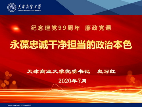 为庆祝建党99周年,深入贯彻落实习近平新时代中国特色社会主义思想和党的十九届四中全会精神,落实中央、市委、市委教育两委部署要求,大力弘扬忠诚干净担当精神,激励广大党员干部担当作为,7月1日,校党委书记史习红以“永葆忠诚干净担当的政治本色”为题,为学校全体中层干部以线上形式讲授廉政党课。