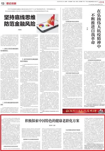 9月21日,《天津日报》(理论创新版)刊发永利官网体育教学部青年教师贾洪祥理论文章“积极探索中国特色的健康老龄化方案”。文章指出,我国老年人群体庞大,人口老龄化应对是一项长期战略任务,是关系我国全面建成小康社会以及小康时代社会可持续发展的重要议题。健康老龄化既是传统美德的新时代体现,也是我们党应对人口老龄化社会进程的战略选择,更是以实际行动履行推动人类卫生健康共同体构建的大国责任。文章从中华民族爱老、敬老、养老的优秀历史文化,后疫情时代社会发展的现实要求,为全球健康治理贡献中国智慧三个层面对中国特色的健康老龄化方案进行了积极探索。光明网、北方网等媒体转载。(审稿:李勤国)