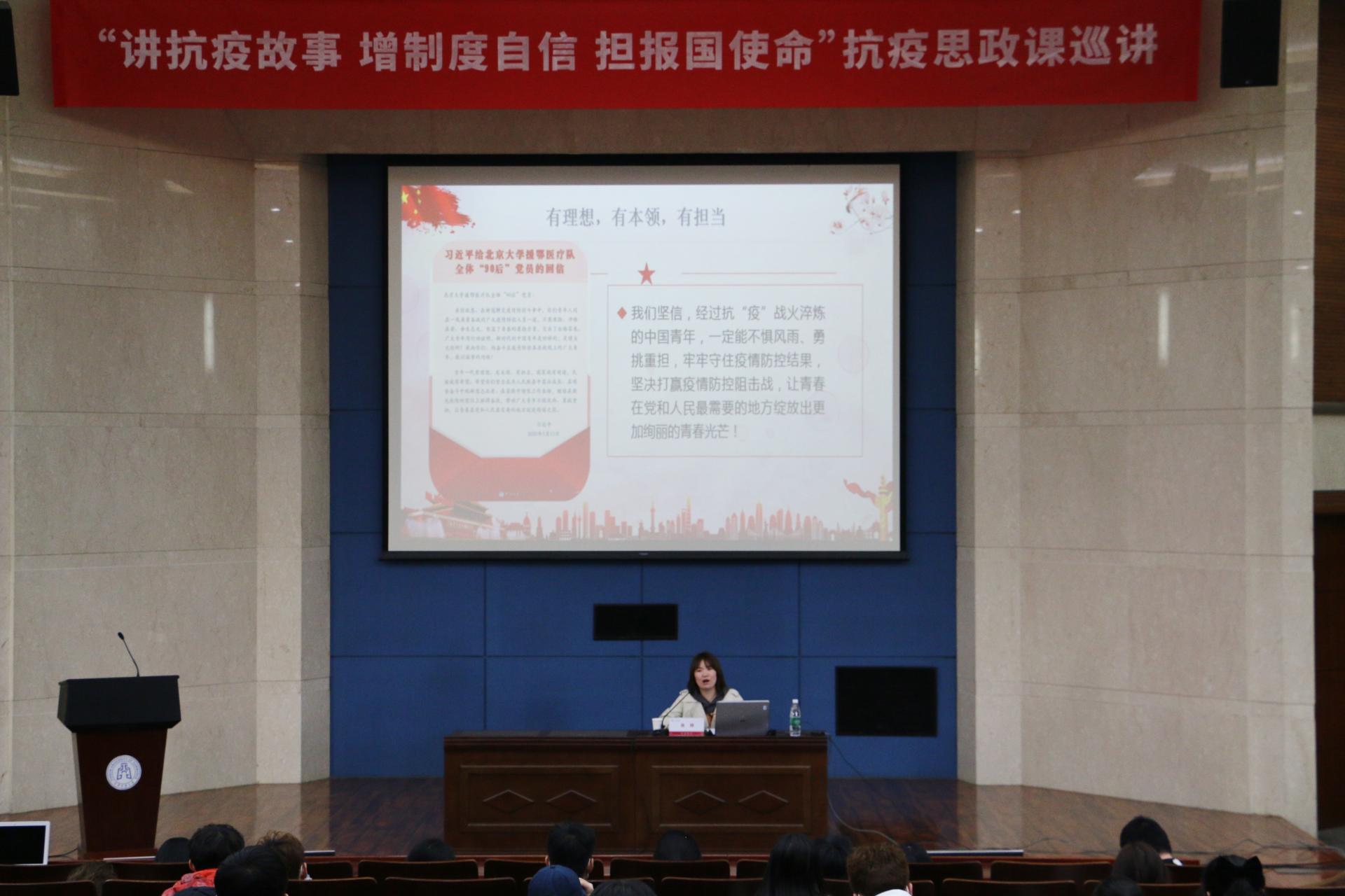 为进一步引导师生弘扬伟大抗疫精神,深刻认识时代使命和责任担当,激发爱党爱国爱社会主义的热情。10月21日下午,“讲抗疫故事 增制度自信 担报国使命”抗疫思政课yl23455永利官网巡讲在图书馆国际学术报告厅举行。天津医科大学第二医院肝胆胰外科副主任、天津第五批援鄂医疗队医疗三组组长孙晋津,天津医科大学朱宪彝纪念医院普通外科护师、天津医科大学总医院支援武汉国家医疗队队员肖婷受邀宣讲。全校160余名师生代表参加。