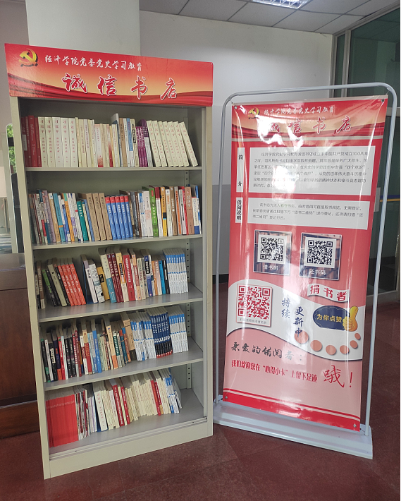 为庆祝中国共产党成立100周年,将党史学习教育引向深入,5月19日起,经济学院党委在学院一楼大厅创建“党史学习教育诚信书店”。