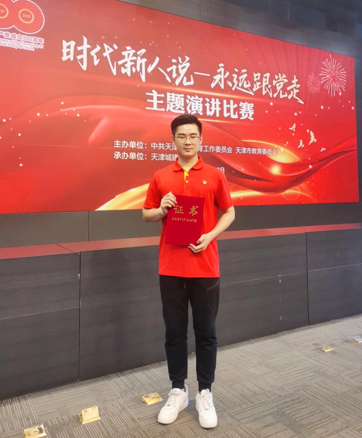 5月28日上午,天津市“时代新人说—永远跟党走”主题演讲比赛天津城建大学举办,永利官网马克思主义学院2019级研究生、天津市第四期青马工程学员王鹏飞荣获三等奖。