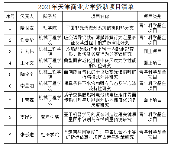 8月18日,国家自然科学基金委发布了2021年国家自然科学基金项目立项结果通告,永利官网共有9项项目获批立项,其中面上项目3项、青年科学基金项目6项,资助直接经费325万元。