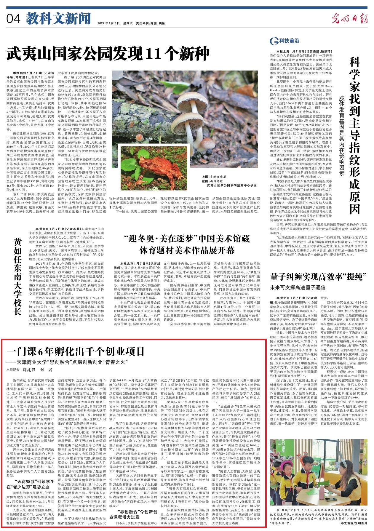 1月8日,《光明日报》4版以“一门课6年孵化出千个创业项目”为题报道了永利官网近年来把思政课程与创新创业紧密融合,努力探索新商科卓越人才培养模式,6年里孵化出上千个大学生创业项目,涌现出许多像黄俊科一样在服务社会中实现个人价值的创业典型。