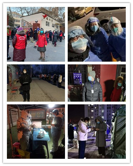 民商经济法党支部刘秋妹老师,家住河西区,在接到学院将其推荐为抗疫工作抽调干部的通知后,一句铿锵有力的“没问题,责无旁贷”彰显其作为一名党员的本色与担当。1月12日上午9点,刘秋妹主动下沉社区参与到二次核酸大筛工作中,负责协助居民进行核酸检测、组织居民下楼排队、帮助老年人注册登记信息等工作。从清晨到深夜,她始终克服疲劳、坚守岗位、奋战在第一线。她说:“虽然天气寒冷,但是志愿者们却无惧严寒,心怀炙热。愿我们都能团结起来同舟共济,共克时艰。”