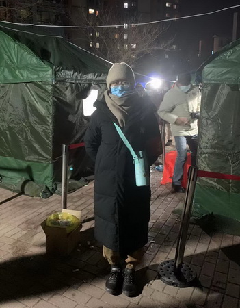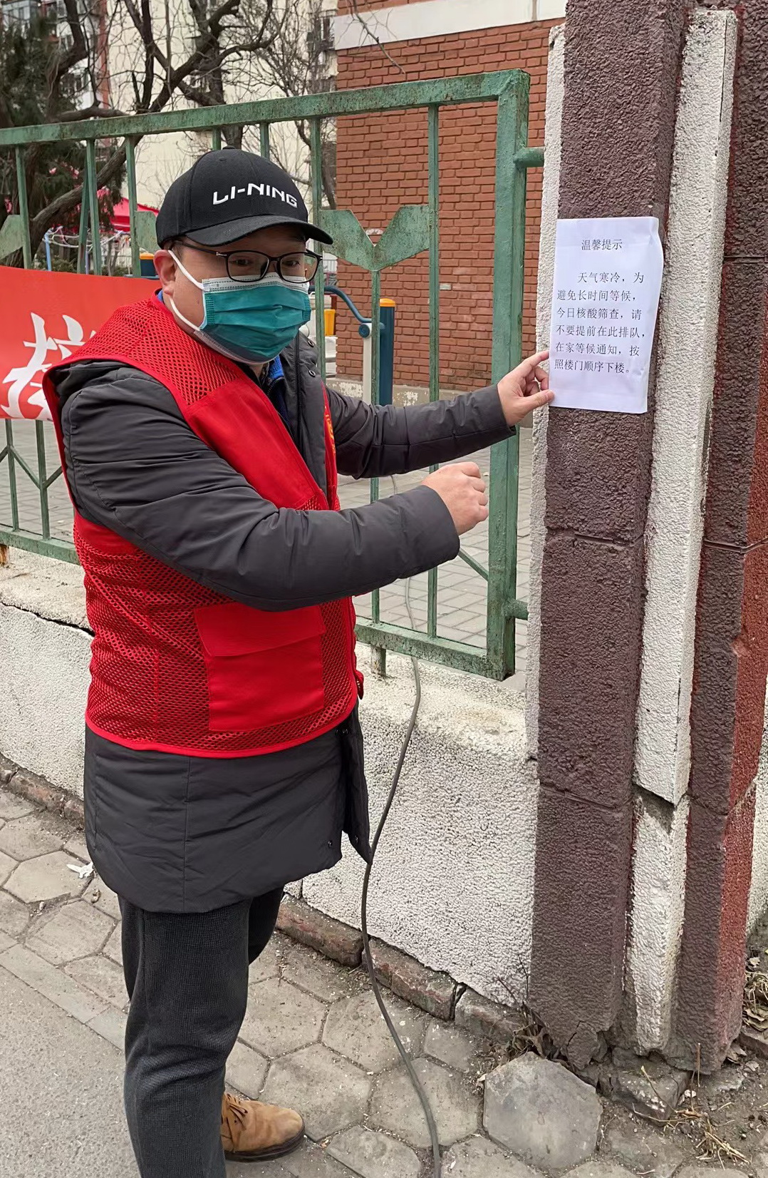 宋婕居住的天津市津南区是本次疫情防控的重点地区。1月9日早晨5点半接到社区通知后,宋婕就将两个年幼的孩子托付给家中老人,与丈夫双双到岗,负责电话通知社区居民核酸检测的时间、地点及相关注意事项。第一轮核酸筛查完毕,宋婕所在的社区升级为防控区,宋婕依然积极参与到在第二轮筛查中,负责维持秩序、登记信息等工作,连续多日在寒风中忙碌,为大筛工作做出自己的贡献。