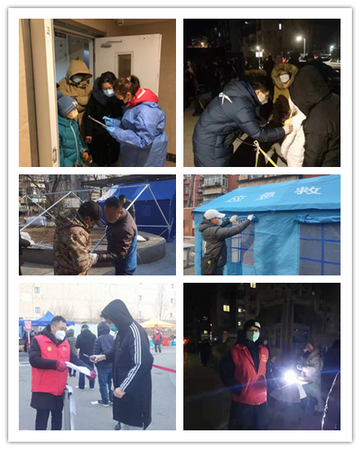 党员教师李斌鑫的孩子才1岁,却主动联系河东区鲁山道金旭园社区,参与到社区的抗疫工作中,负责维持检测秩序及清点人数工作。由于人数过多,直到凌晨5点才结束了测试工作。他说:“冬虽寒心却暖,热水瓶、暖宝宝、还有那一句句的感谢都令人铭记于心。”