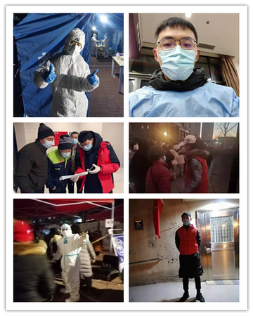 党员教师赵磊和霍孟下沉至西沽街道社区,主动参加了水木天成第二社区疫情防控志愿者服务工作,主要负责引导居民扫描二维码报道、维持现场人员秩序等工作,组织市民按顺序到小区内指定检测点进行检测,并宣传疫情防护措施。他们说:“作为党员应该始终坚守在抗疫第一线,工作在最前沿,积极服务群众,尽职尽责完成工作,为疫情防控贡献出自己的力量。疫情无情人有情,越是关键时、越是关键处,自己越有责任为群众提供服务,这也是全体志愿者们的共同心声”。