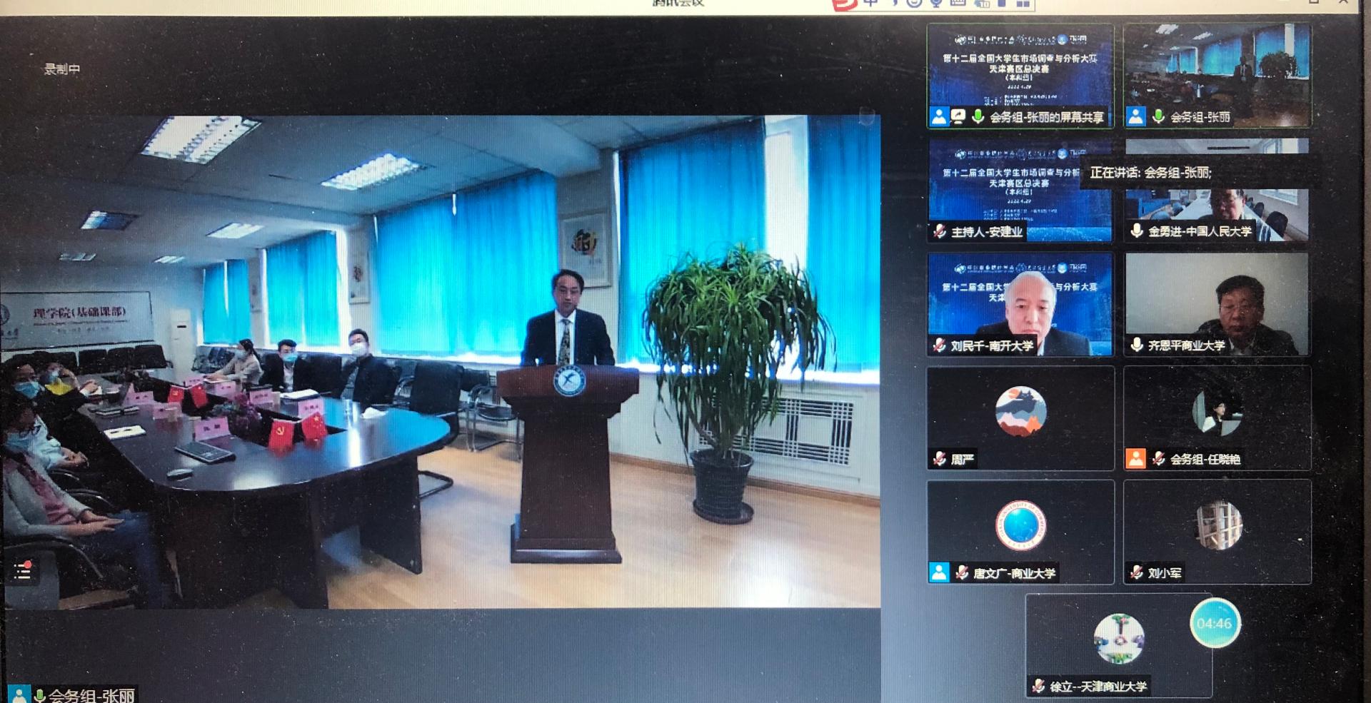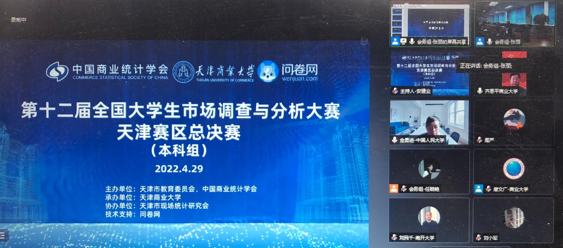 4月29日,由天津市教委、中国商业统计学会主办,yl23455永利官网承办,天津市现场统计研究会协办的第12届全国大学生市场调查与分析大赛天津赛区总决赛(本科生组)在线上举行。天津市教委高教处处长徐震、中国商业统计学会会长金勇进、yl23455永利官网副校长齐恩平、天津市现场统计研究会理事长刘民千参加开幕式并致辞。活动由yl23455永利官网理学院院长安建业教授主持。