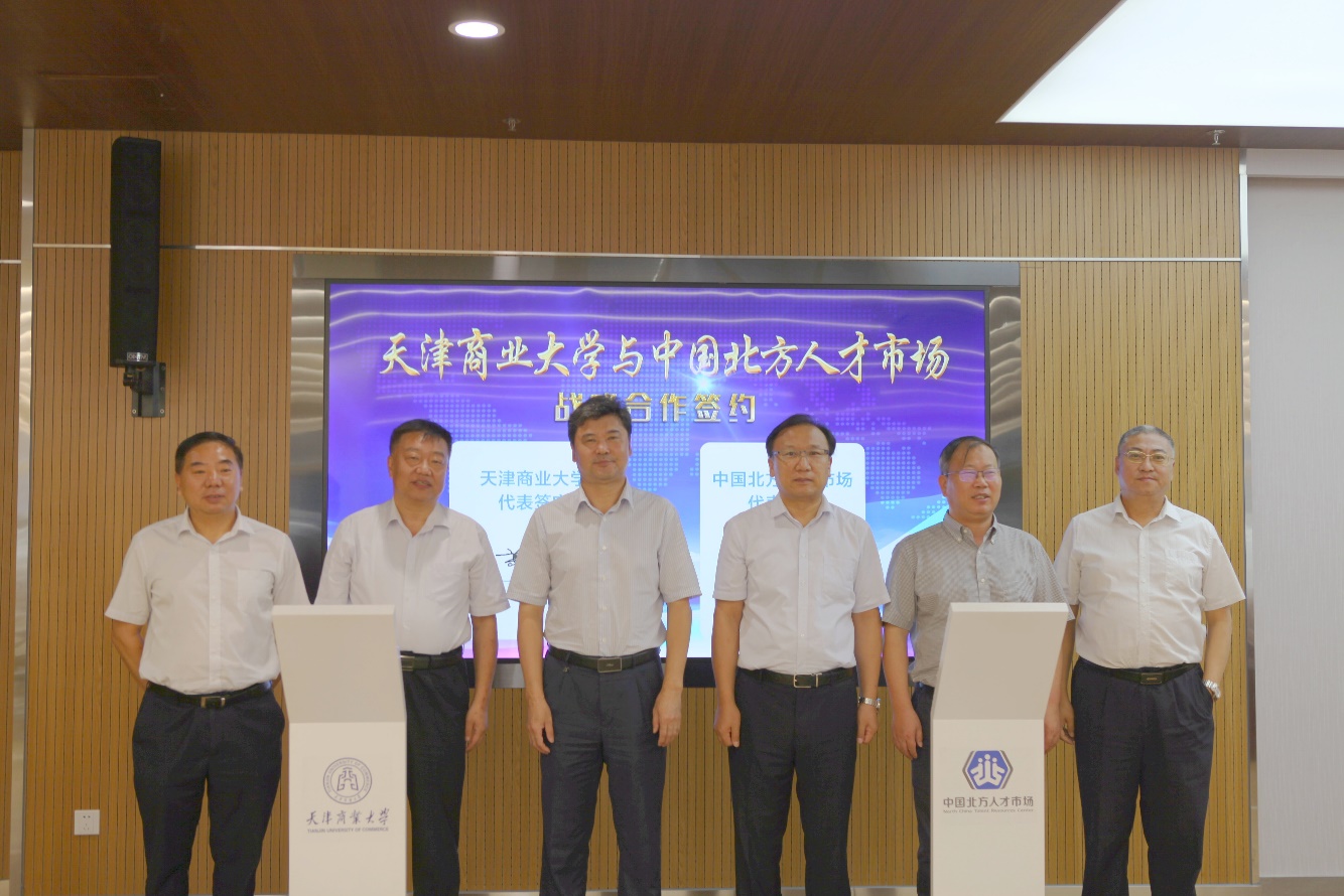 8月10日上午,yl23455永利官网与中国北方人才市场举行战略合作协议签约仪式。校党委副书记、校长葛宝臻,副校长陈冠益,中国北方人才市场总裁于泉,党委副书记霍连东,副总裁刘青田,纪检书记崔成出席签约仪式。教务处、招生与就业处、研究生处、人事处、现代服务业中心负责同志,双碳研究院科研骨干参加座谈。