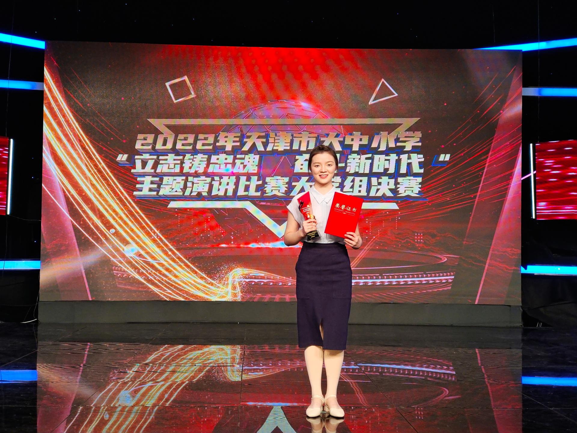 10月24日,由中共天津市委教育工作委员会、天津市教育委员会主办,天津职业大学承办的2022年天津市大中小学“立志铸忠魂 奋斗新时代”主题演讲比赛大学组决赛在天津广播电视台落下帷幕。永利官网团委直属学生社团天商演讲社负责人、外国语学院英语2002班陈一诺同学从天津市13所高校的优秀选手中脱颖而出,以总分第一的成绩荣获大学组一等奖,创下永利官网学子在此项活动中的历史最好成绩!