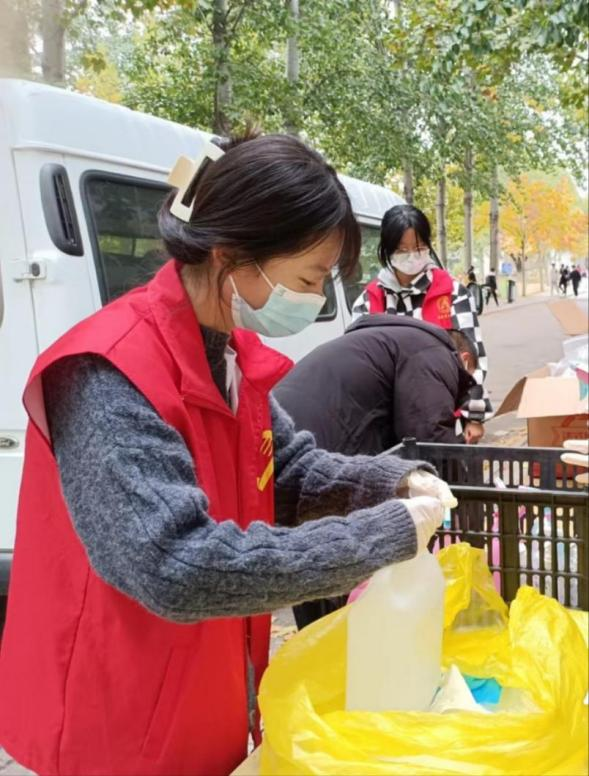 来自红十字会急救培训部,招商引资2101班刘艳艳,是核酸检测区服务点小组长,她的工作是带领服务点志愿者为核酸检测志愿者提供后勤支持,为志愿者们派发防疫衣物、分发试管棉签、提供技术指导、统计核酸人数等等,他们是每天最早上岗、最晚下岗的一批志愿者。与此同时,刘艳艳还积极参加扫码登记等工作,本学期累计参加志愿服务20余次,充分发扬了“奉献、友爱、互助、进步”的志愿精神。