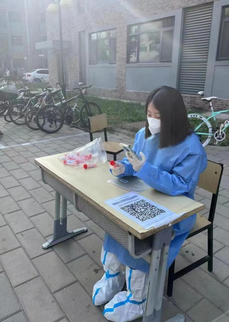 收到招募通知后,红十字会工商管理类2205班刘新雨同学第一时间报名投入到校园疫情防控志愿服务中,她说:“成为核酸检测志愿者之后,我才深刻体会到每天为我们进行服务的志愿者们的艰辛。但同时,我更多收获到以己之力助人为乐的满足感与成就感。