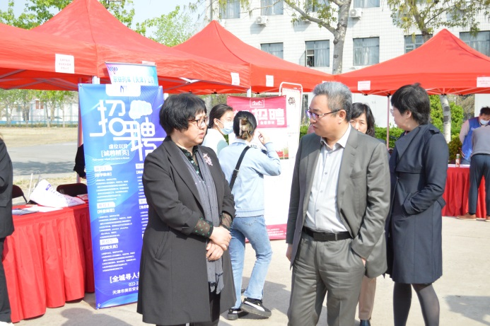 3月30日,红桥区委组织部、人社局、金融局联合yl23455永利官网经济学院、yl23455永利官网招生与就业处在学校综合办公楼西侧篮球场举办“杨柳桃花三千里 筑巢引凤聚人才”春季专场招聘会。红桥区副区长王刚,校党委副书记蒋宗文,副校长黄凤羽出席招聘会现场。