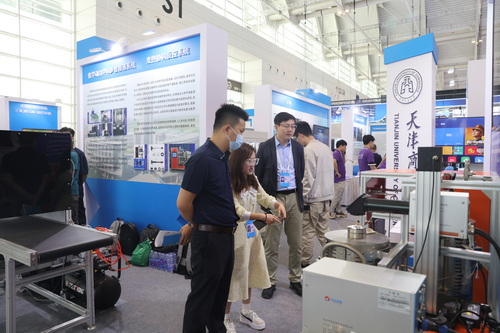 由副校长陈冠益教授带领的环境能源+X创新实验室团队有两项成果亮相大会,分别是“垃圾热化学动力学同步性智选系统”和“光热协同反应系统”。“垃圾热化学动力学同步性智选系统”利用高光谱与机器学习技术瞬时获取垃圾样本的热化学动力学参数,以此为依据进行智能分选,有效提高垃圾下游能源化利用的效率。