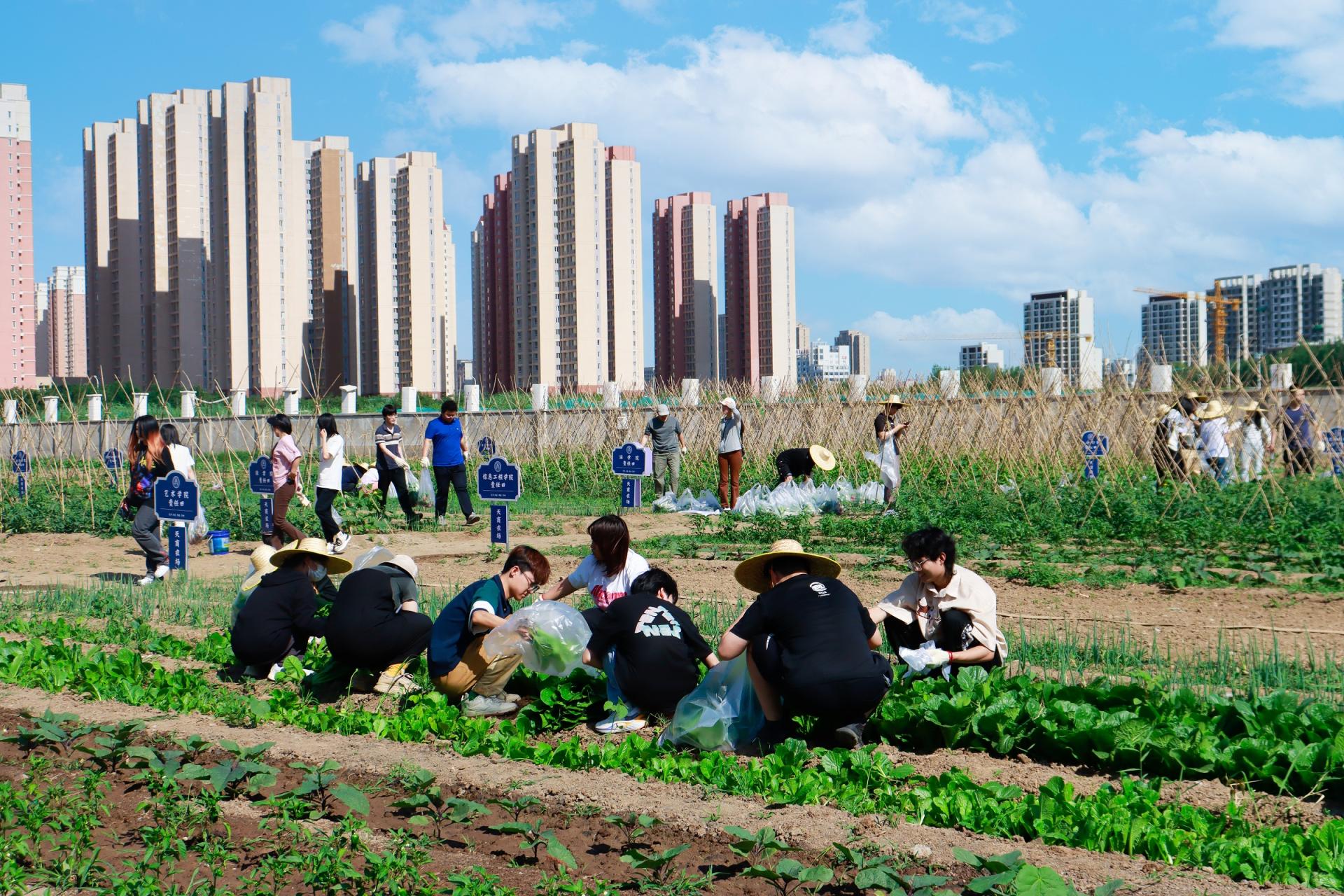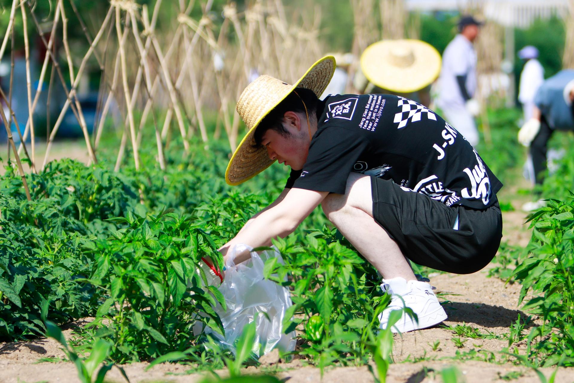 学生采摘蔬菜