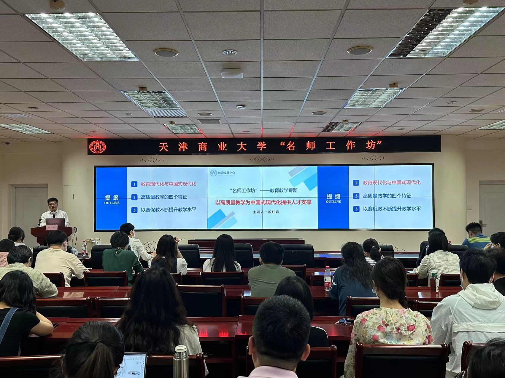 为提高永利官网教师教育教学水平,推动教学创新,提升人才培养质量,5月25日下午,教师发展中心在4号教学楼404会议室举办“名师工作坊”,特邀天津大学远程与继续教育学院院长殷红春副研究员为永利官网教师带来“以高质量教学为中国式现代化提供人才支撑”主题分享。各学院新入职教师、中青年骨干教师等60余人参加讲座。