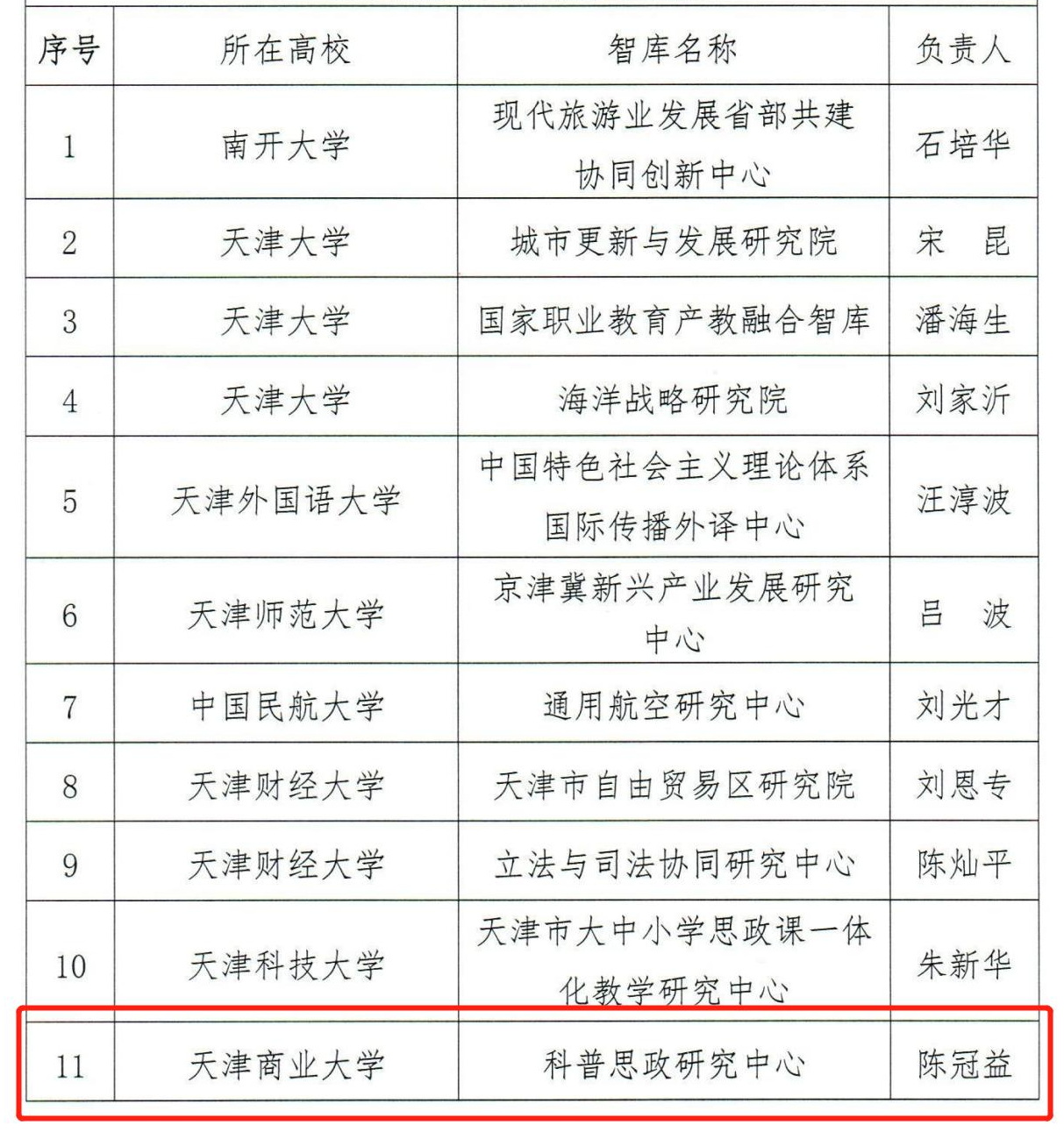 日前,天津市教育委员会发布了《关于公布第四批天津市高校智库认定结果的通知》,通过高校组织申报和专家会议评审,认定11家智库为第四批天津市高校智库,认定11家智库为第四批天津市高校培育智库。永利官网副校长陈冠益教授领衔的科普思政研究中心被认定为第四批天津市高校培育智库。