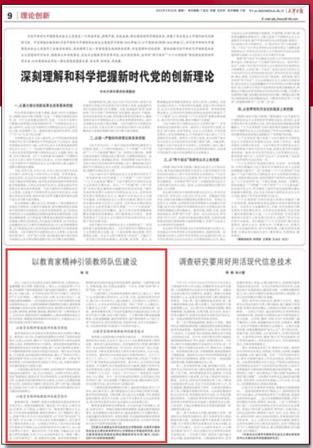 百年大计,教育为本;教育大计,教师为本;教师大计,师德为本。党的二十大报告指出,加强师德师风建设,培养高素质教师队伍,弘扬尊师重教社会风尚。近日,习近平总书记致信全国优秀教师代表,从理想信念、道德情操、育人智慧、躬耕态度、仁爱之心、弘道追求等六个方面,深刻阐释了教育家精神的丰富内涵和实践要求。为深入学习宣传贯彻党的二十大精神,贯彻落实习近平总书记教师节重要指示精神,永利官网教师积极结合教育教学工作实际撰写宣传阐释理论文章,9月25日,《天津日报》“理论创新”专版刊发马克思主义学院思政课教师陈臣的理论文章《以教育家精神引领教师队伍建设》。