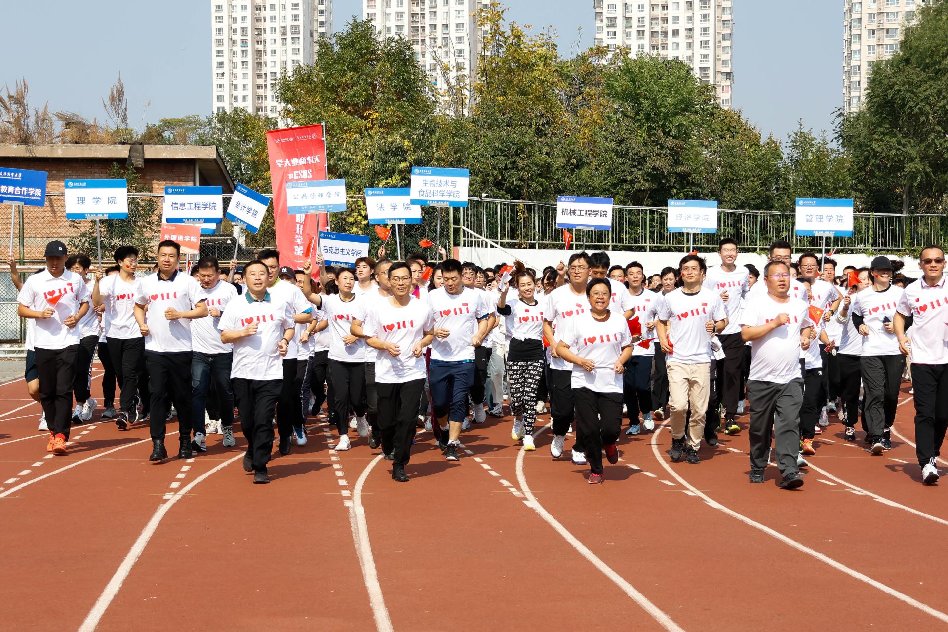时过寒露,秋高气爽。10月11日中午,700余名师生相聚在校田径运动场,共同参与2023年体育节启动仪式暨秋季学期“开学第一跑”活动。校党委书记张亚、校党委副书记蒋宗文、派驻纪检监察组组长吴海东、副校长陈冠益出席,相关职能部门负责人、各学院党委副书记、辅导员及2023级新生代表参加活动。