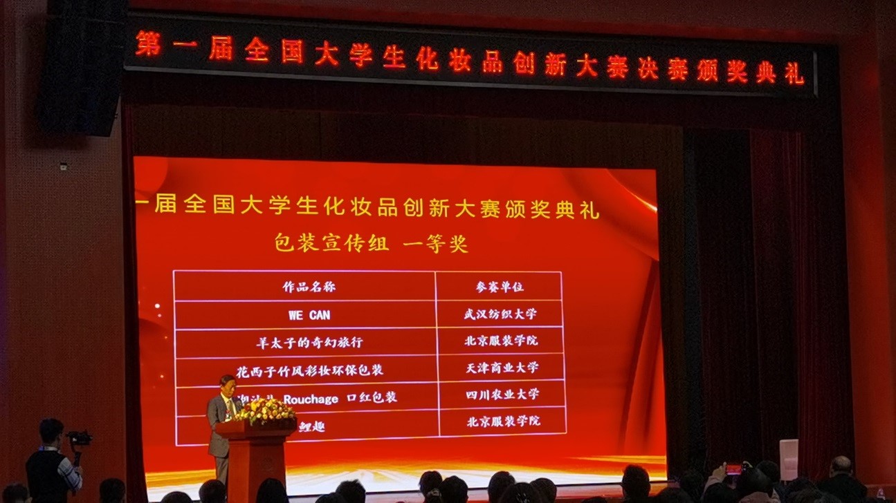 11月2至4日,第一届全国大学生化妆品创新大赛决赛在北京工商大学阜成路校区举行,机械工程学院石岩、王心宇、寇金宝三位老师指导的包装工程专业18名本科生在本次创新大赛中获奖。参赛学生获一等奖1项、三等奖2项、优秀奖2项,石岩老师获得优秀指导教师奖,学校获得优秀组织奖。