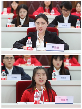 谈话会上,学校第十六届学生会执行主席蔡雪阳和天津市第七期“青马工程”学员李卓玲作表态发言。大家表示,要深入学习贯彻习近平新时代中国特色社会主义思想和党的二十大精神,坚定不移听党话、跟党走,自觉做好学校联系广大同学的桥梁和纽带,不辜负学校的培养和信任。(审稿:刘桂涛)