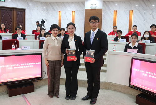 12月13日下午,校党委副书记王立云与新一届学生会、研究生会主席部长团成员和市级、校级青马学员在图书馆明德厅进行集体谈话,并向全体成员赠送了《习近平与大学生朋友们》一书。会议由校团委主要负责同志主持。