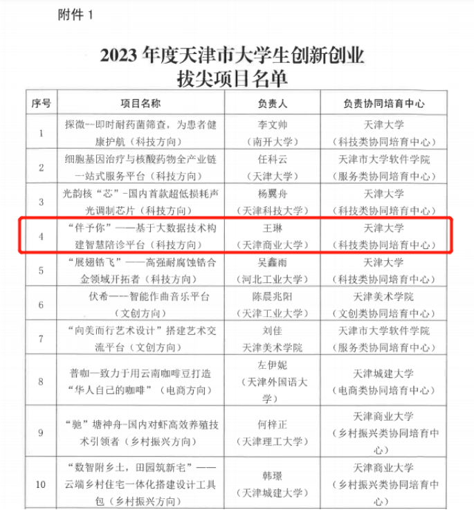 据悉,天津市大学生创新创业拔尖项目由市委教育工委、市教委设立,旨在培养和提高大学生创新、创意、创造、创业的意识和能力,助力高校就业创业教育、创业实践活动高质量发展,培育具有天津特色的高质量创新创业成果。本年度共有15个创新创业拔尖项目获批立项。