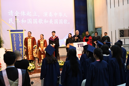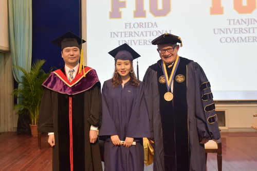 典礼仪式上,石琳哲同学代表全体毕业生发言。201名毕业生依次走上典礼台,接过FIU酒店管理理学学士学位证书,为自己的四年大学生活划上完美的句号。