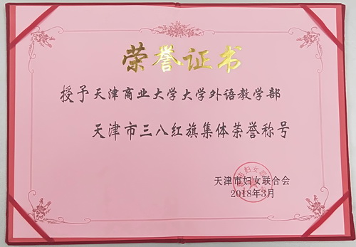 近日,天津市妇女联合会印发《关于表彰2017年度天津市三八红旗手标兵、三八红旗手(集体)的决定》,大学外语教学部被授予“天津市三八红旗集体”荣誉称号。