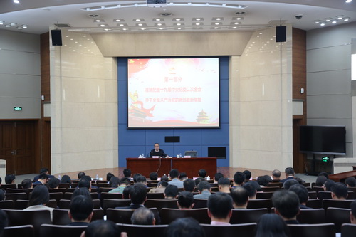 4月17日下午,学校在图书馆国际学术报告厅举行高校全面从严治党形势与任务报告会暨校党委理论学习中心组(扩大)学习会。市纪委市监委驻市委教育工委纪检监察组副组长徐兴云作了题为《认真学习贯彻中央纪委十九届二次全会和市纪委三次全会精神 推进教育系统全面从严治党向纵深发展》的报告。校领导史习红、葛宝臻、卫克武、路波、邱立成、齐恩平出席。校纪委书记李炜主持。