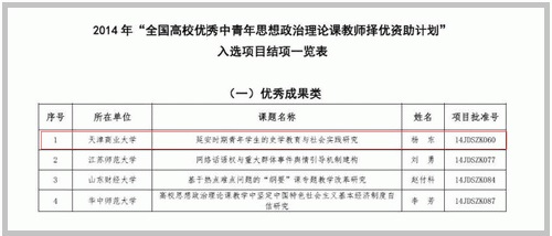 近日,教育部组织专家对2014年“全国高校优秀中青年思想政治理论课教师择优资助计划”入选的49个项目进行鉴定评审,马克思主义学院杨东副教授所著的《延安时期青年学生的史学教育与社会实践》一书获评“优秀”成果。此次鉴定分优秀、合格、不合格三个等级,全国仅有4项成果获优秀等级,杨东专著排名第一。
