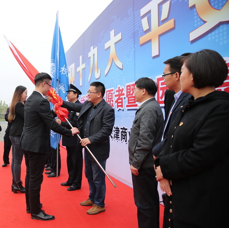 启动仪式上,北辰公安分局和北辰区综治办相关负责同志、校保卫处负责同志分别就充分发挥学生平安志愿者和安全信息员队伍的积极性,提高学生安全防范意识等工作进行动员,并为平安志愿者和安全信息员学生代表授旗。学生志愿者代表宣读了倡议书,积极倡导广大同学加入平安志愿者队伍,为保障安全稳定的校园环境贡献自己的一份力量。