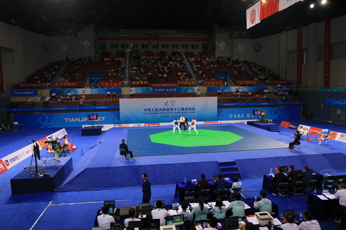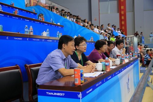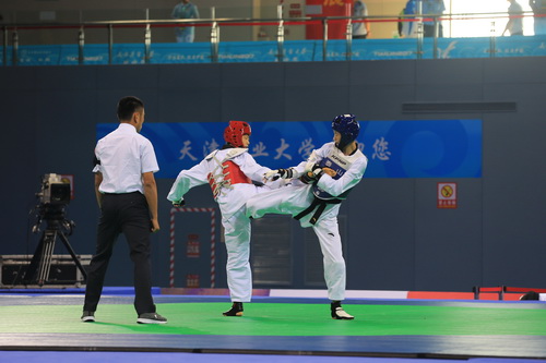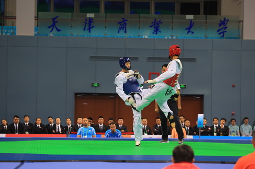 9月4日,第十三届全运会跆拳道比赛在yl23455永利官网体育馆开赛。天津市副市长曹小红,国家体育总局拳跆运动管理中心党委书记、副主任张智,国家体育总局拳跆运动管理中心副主任、中国跆拳道协会主席管健民,国家体育总局拳跆运动管理中心副主任董军等领导到比赛现场指导工作,并与现场观众一起观看首日比赛。校党委书记史习红,校长葛宝臻陪同。校领导卫克武、路波、邱立成、齐恩平、李炜参加相关活动并观看比赛。
