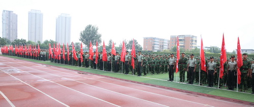 最后,齐恩平向各营学生代表授旗,标志着2016级学生军训正式开始。