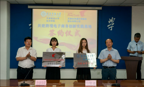 邱立成在致辞中指出,学校多年来以学科建设为龙头,着力构建多学科协调发展、相互支撑的学科专业体系,形成了鲜明的商科特色;坚持培养具有高度社会责任感、深厚商学素养的复合型应用型创新创业人才,建立起了“教育、实践、指导、支持、服务”为一体的创新创业教育工作平台。此次经济学院与天津自贸通外贸服务股份有限公司共建跨境电子商务创新实践基地,为融入外贸服务新业态作出了积极尝试,必将更好地促进产学研转化、培养出更多的优秀跨境电子商务后备人才。王建表示,校企合作是新形势下企业发展进步的内在要求和实现双赢的战略举措,既是当务之急,又是长远大计。跨境电子商务创新实践基地的建立,将深入推进校企合作战略,促进自贸通产业基础升级,加快人力资源结构调整,为自贸通长远发展提供完备的人力资源保障,为跨境电商事业输送有生力量。