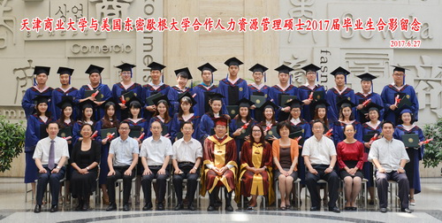 6 月27日上午,yl23455永利官网国际教育学院2017届人力资源管理专业(中美合作)硕士研究生毕业典礼暨学位授予仪式在图书馆二楼弘毅厅举行。副校长齐恩平出席并讲话。美国东密西根大学商学院管理系主任兼研究生项目管理主任Fraya Wagerna-Marsh 教授和学校教务处、研究生部、国际交流处、国际教育学院相关负责人出席。毕业典礼暨学位授予仪式由国际教育学院院长乔秀梅主持。