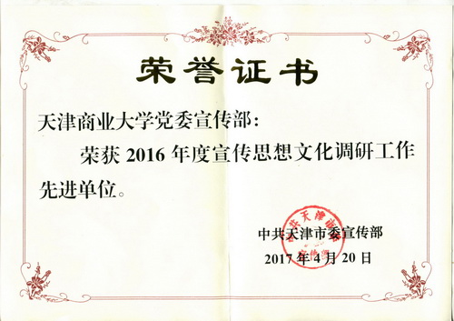4月20日上午,天津市舆情信息和调研工作会议在武清区召开。会议传达了全国省区市单位宣传部调研工作会议和中宣部舆情信息工作会议精神,研究部署了2017年全市舆情信息和调研工作,并对2016年度调研和舆情信息工作先进集体(个人)进行了表彰。宣传部荣获天津市2016年度宣传思想文化调研工作先进单位,成为全市普通高校唯一获表彰单位。