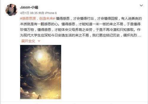同学们发表了缅怀先烈、感恩亲人等主题微博文