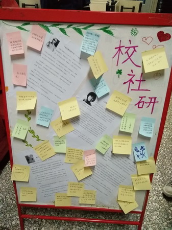 在校园内,社研会布置了以“天雨粟,英雄泪,感恩漫太古”为主题的纪念展板,展示了张自忠、佟麟阁等八名革命烈士的英雄事迹。同时还预留了“感恩当下”展板,供同学们留言。